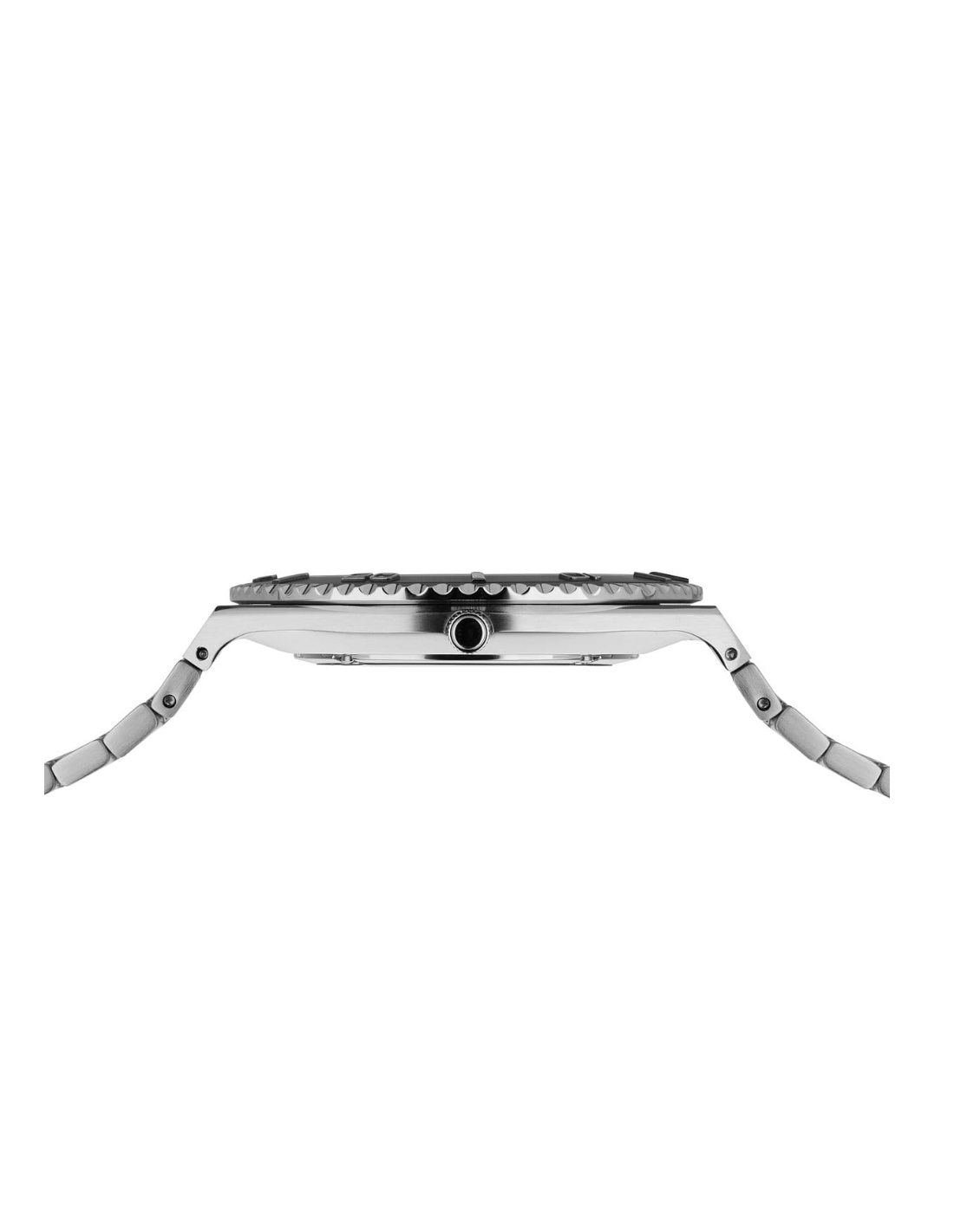 Una caja superplana y un brazalete de eslabones anchos de acero inoxidable robusto y cepillado, el bisel y las agujas e índices iluminados dan a este reloj un aspecto potente y deportivo.