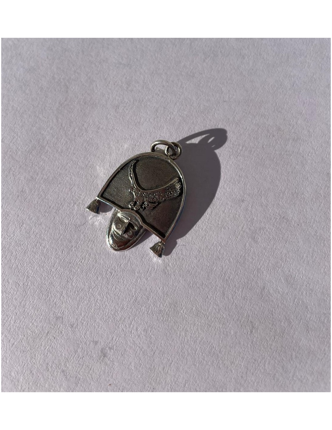 Este colgante hecho en plata envejecida con forma mide por 20mm por 23mm y pesa 3 gramos aproximadamente.