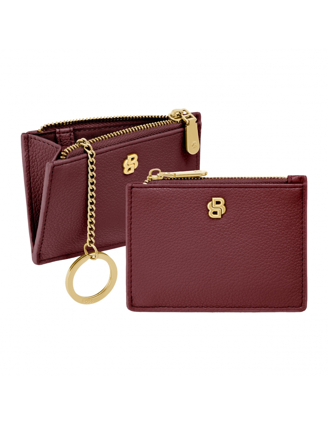 Preciosa cartera tarjetero de Hugo Boss en un bonito y actual color burgundy perfecta para los bolsos pequeños.