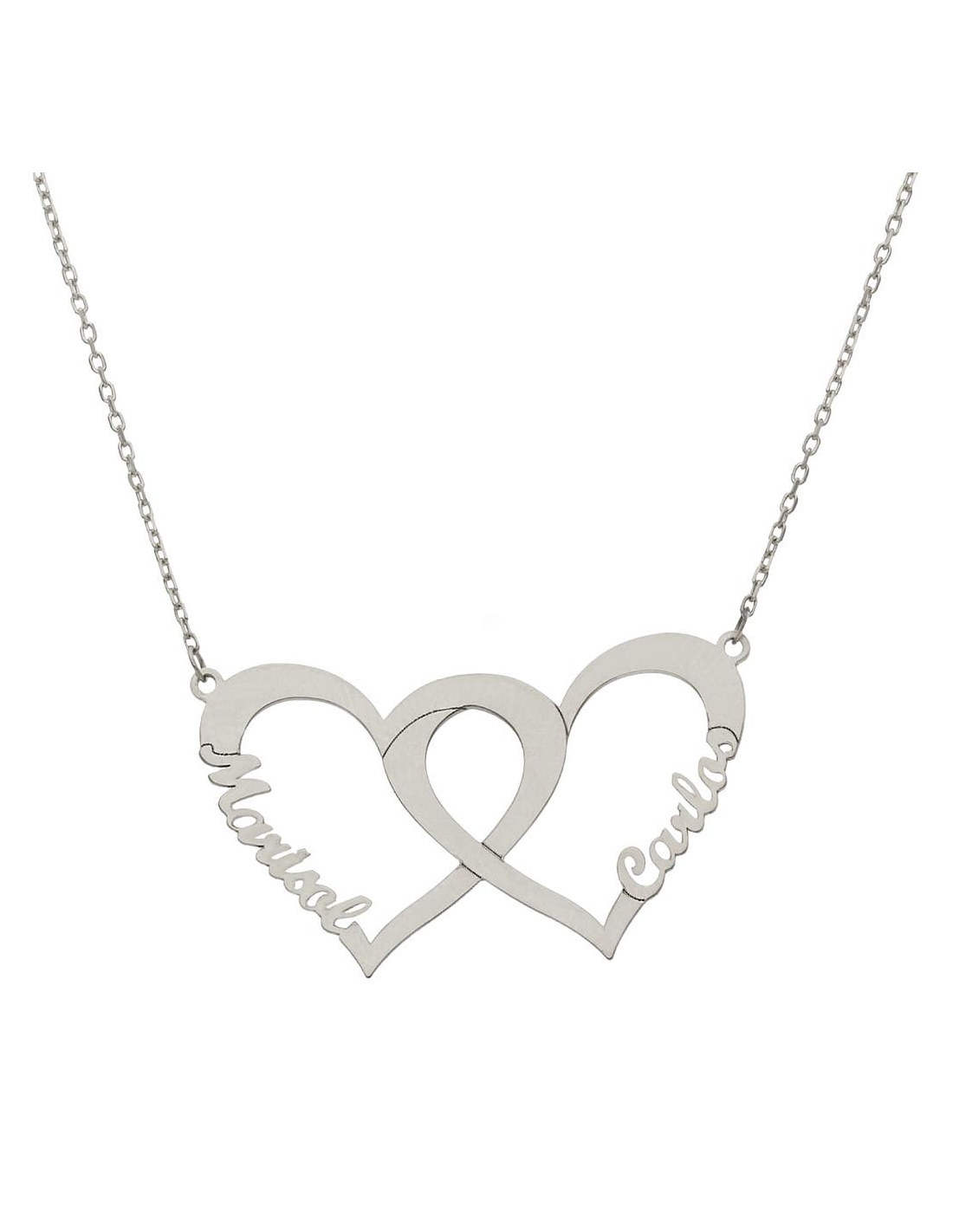 Gargantilla con corazones entrelazados en Plata de Ley 925mm personalizable con nombres en cada corazón.