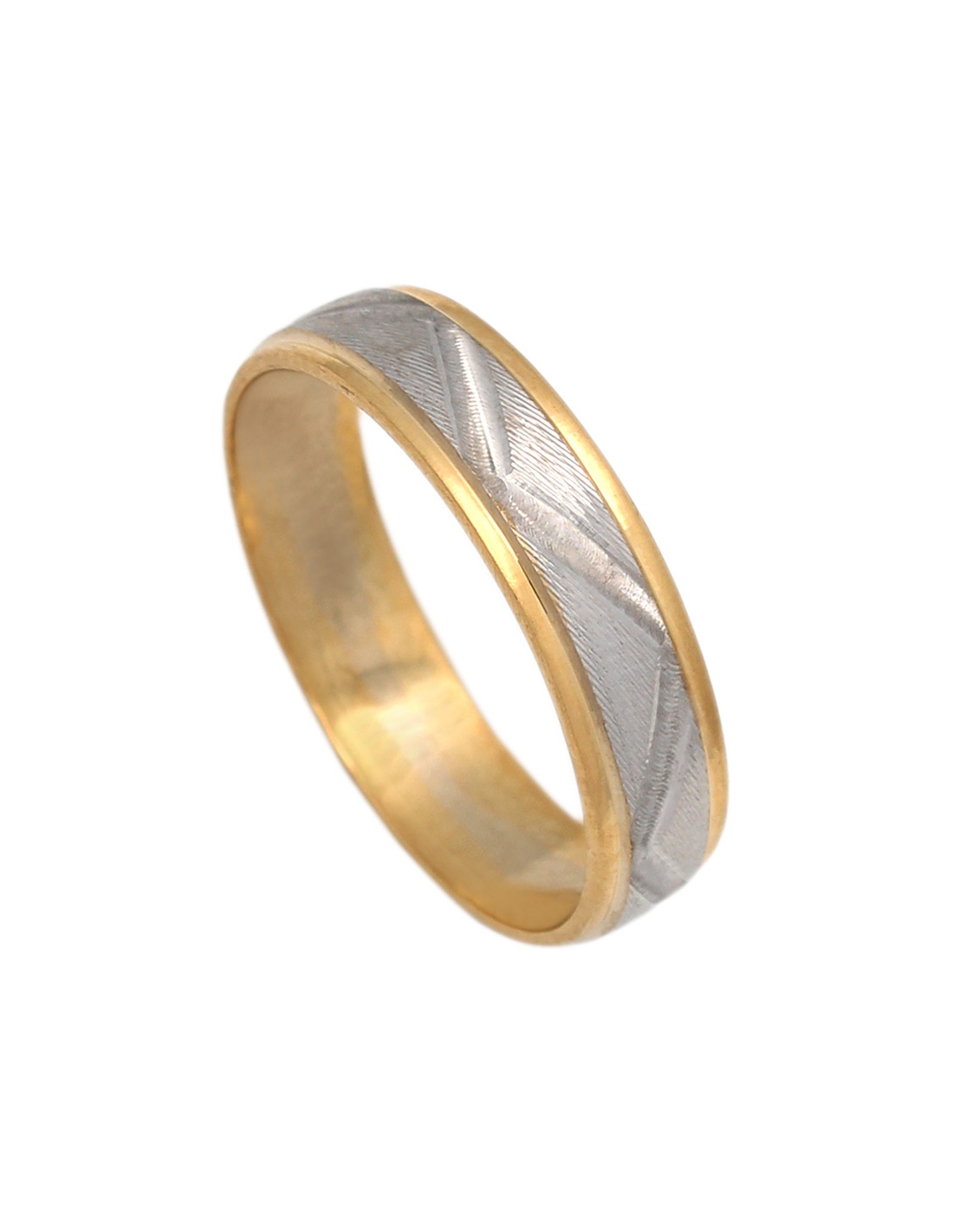Alianza bicolor tallada en Oro de 18 Kl. con Zig-Zag.
