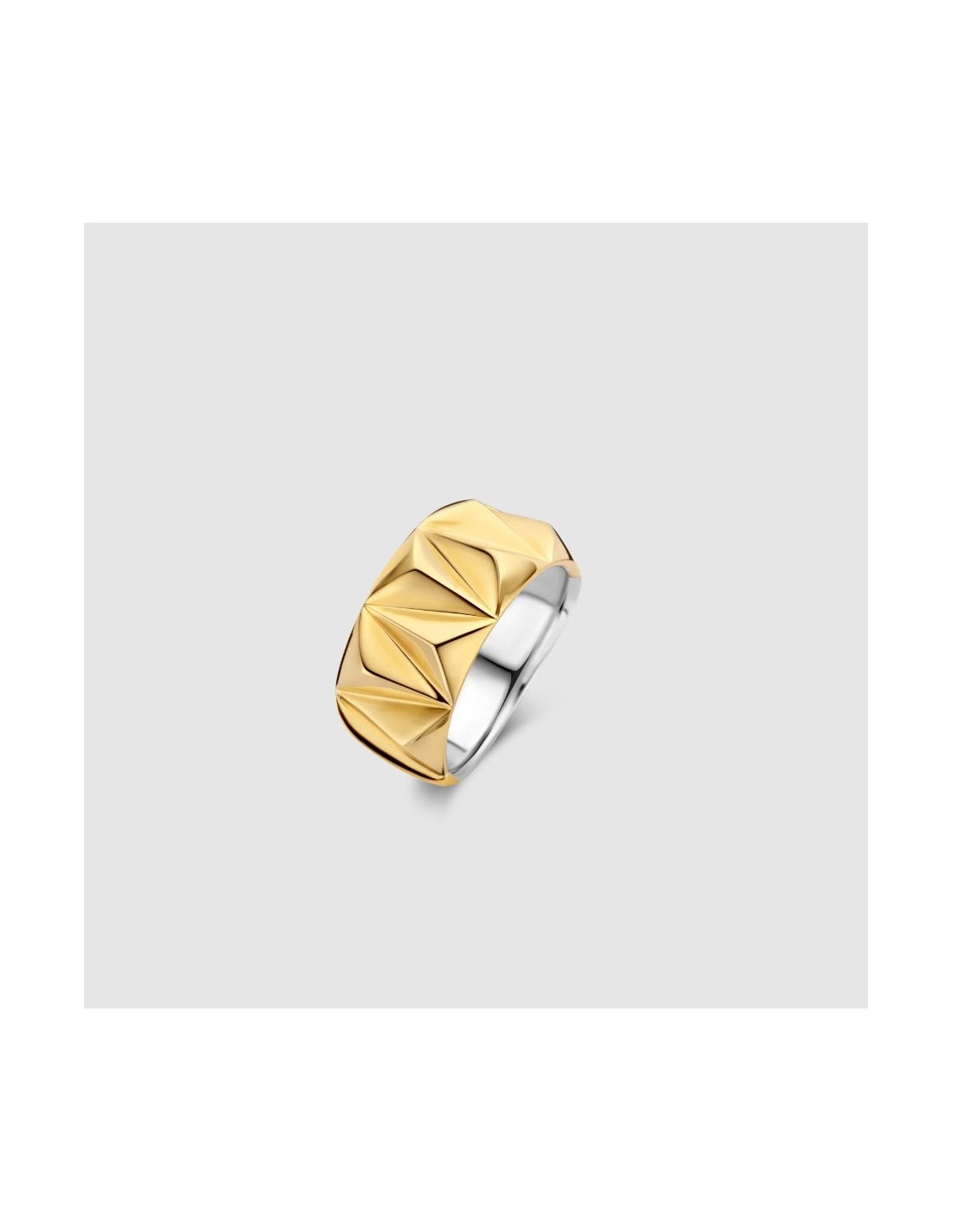 Anillo de plata bañada en oro TI SENTO 12279SY con una sofisticada estructura de tachuelas.
