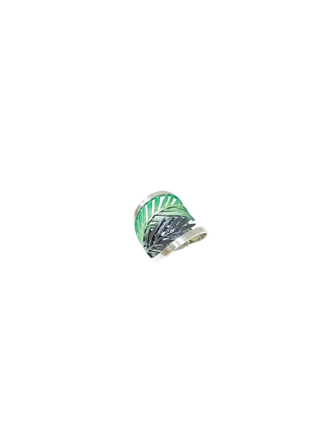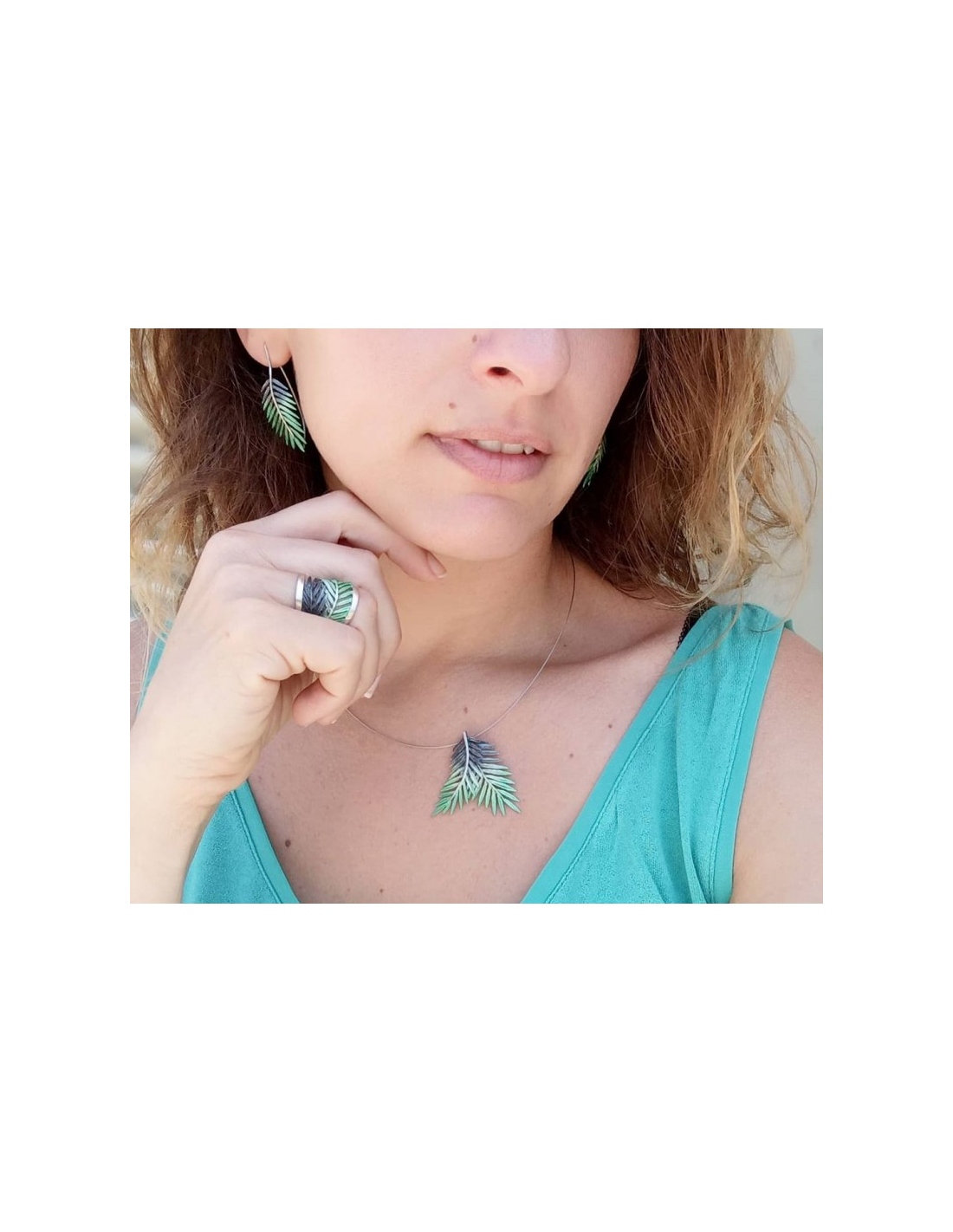 Pendiente de plata hecho en Galicia con pigmento de color verde simple.