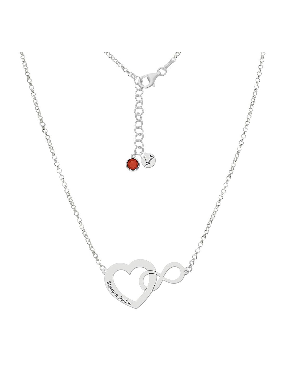 Cadena + colgante infinito en forma corazón en Plata de Ley 925mm personalizable con dos nombres.