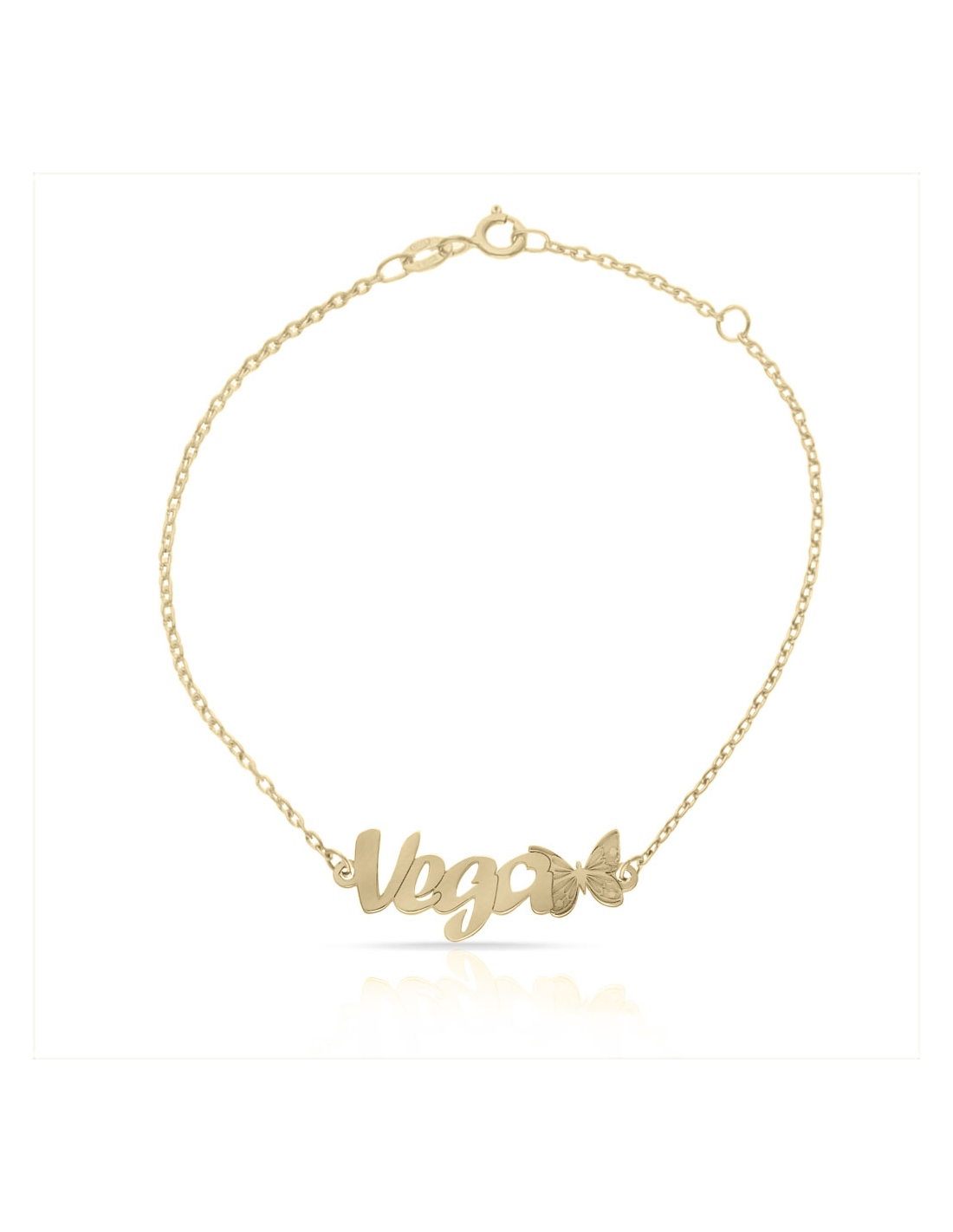Pulsera de nombre + mariposa en Oro 18 Kl.
