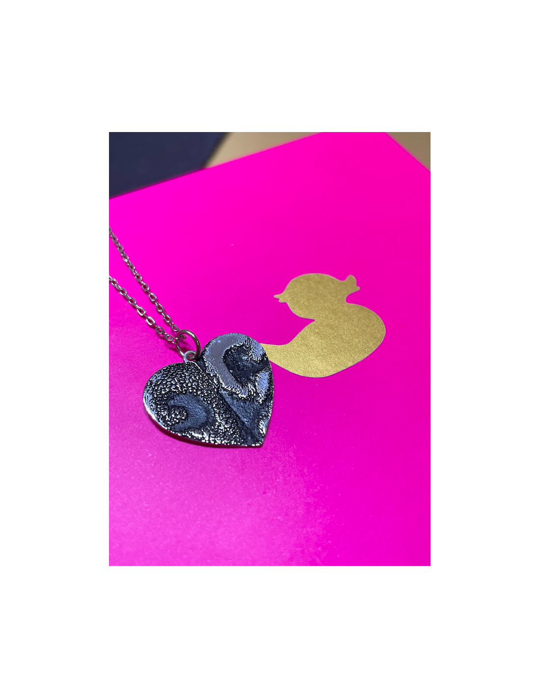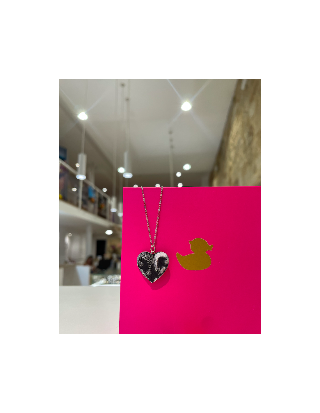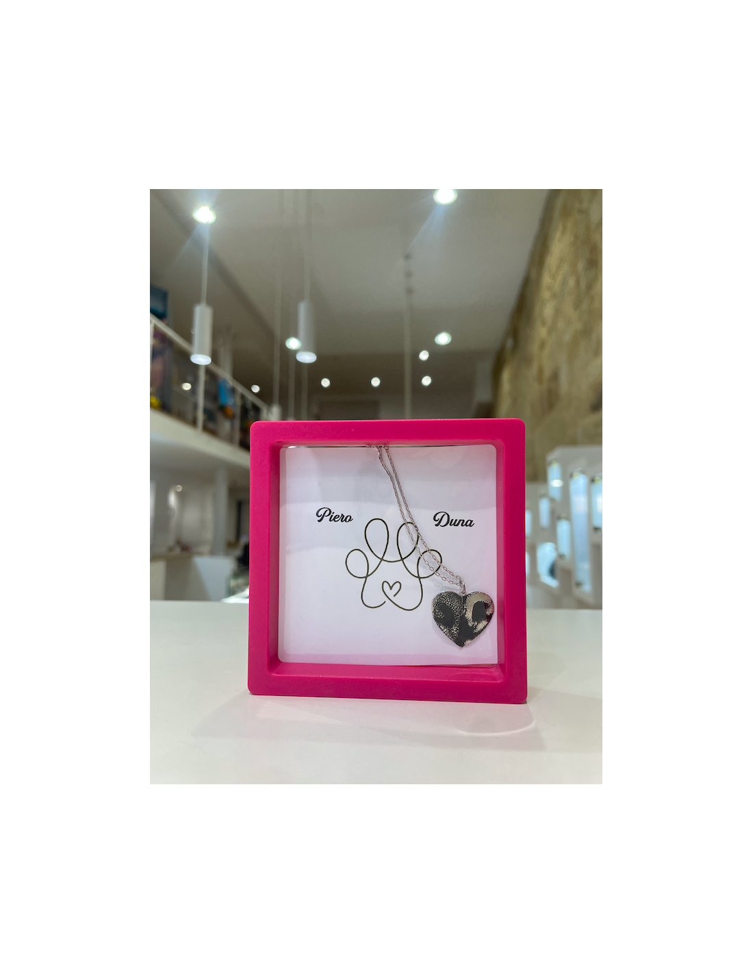 Este bonito colgante personalizado hará que tu mascota y tu siempre vayais juntitos. Hecho en plata de ley es una chapita que podrá ser en forma de corazón o redonda y lleva impresa la huella de la naricilla de tu mascota. En este caso, son dos huellas de dos perros diferentes que juntas hacen este bonito corazón.