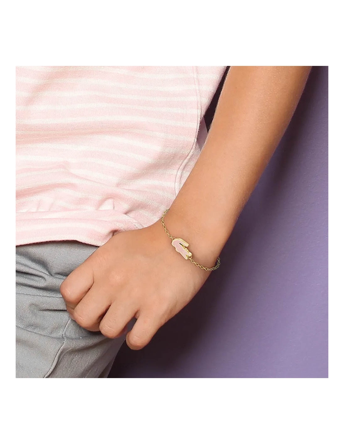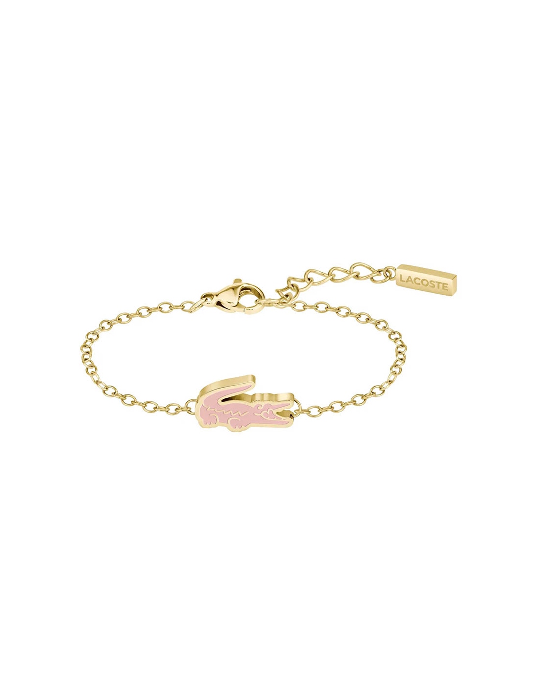 Pulsera de acero con el cocodrilo de la marca en rosa.