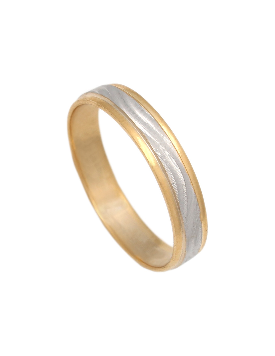 Alianza bicolor tallada en Oro de 18 Kl. con ondas.