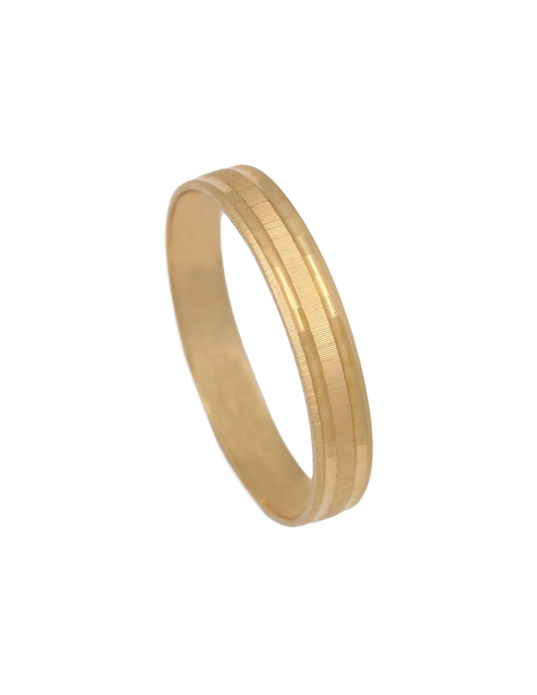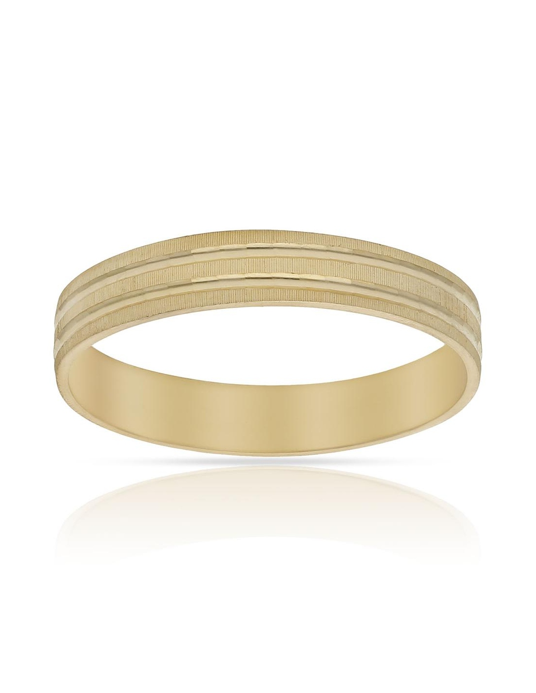 Alianza tallada de 3,50mm en Oro de 18 Kl. matizada con líneas en brillo.