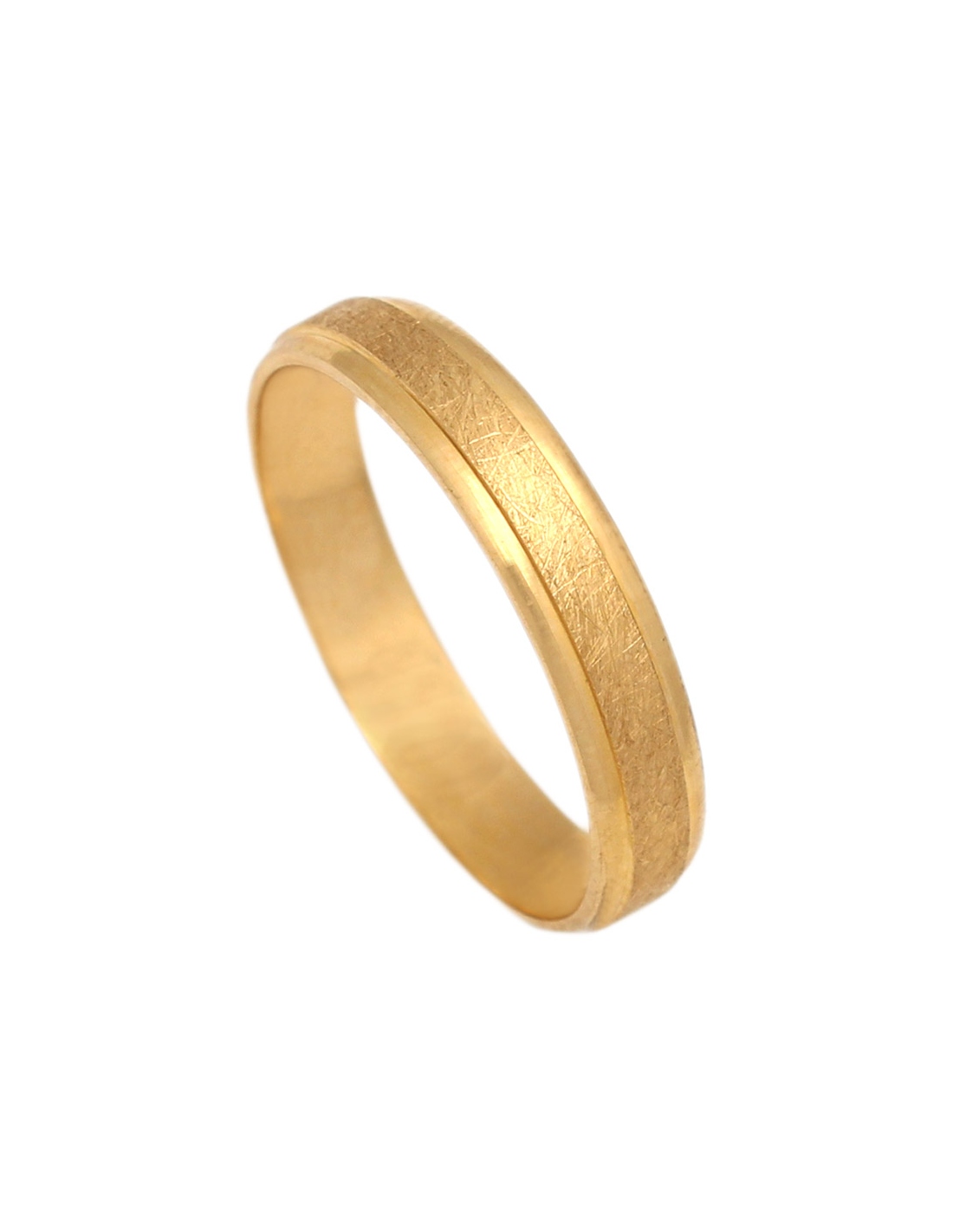 Alianza en Oro de 18 Kl. con matizado y tallado en la parte central y brillo en el resto de la alianza.