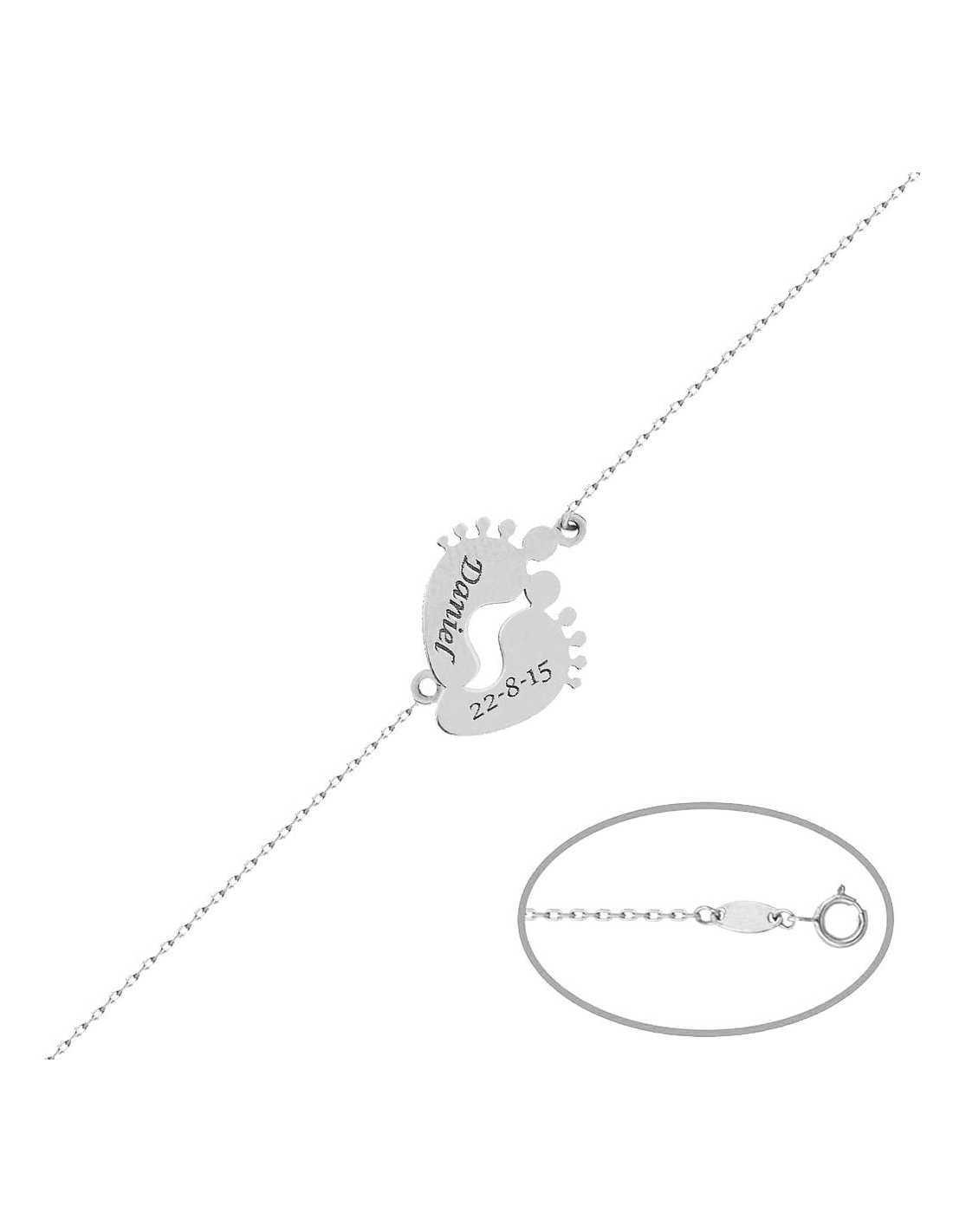 Cadena + Colgante con pies bebé en Plata de Ley personalizable con grabación de 2 nombres o nombre + fecha .