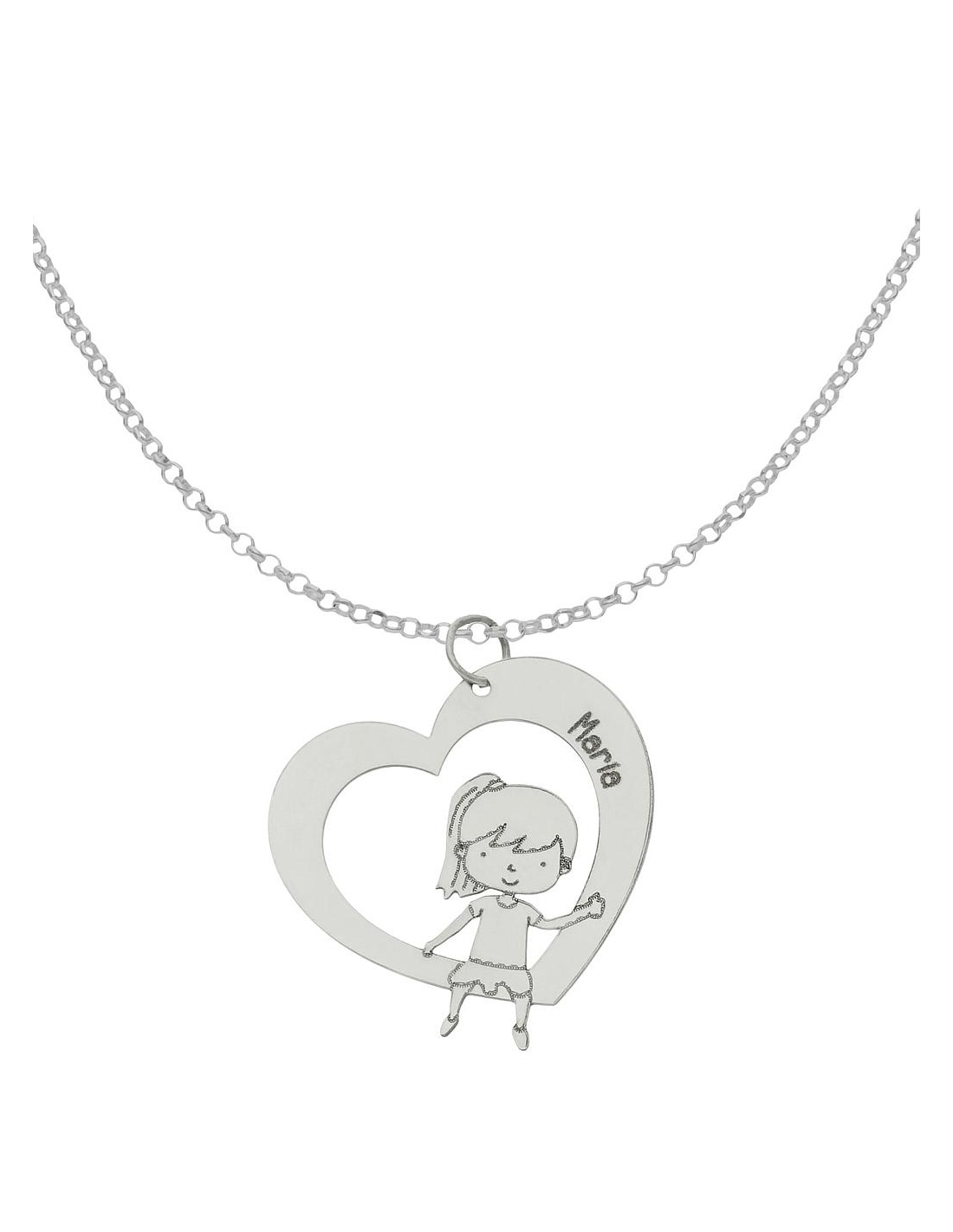 Gargantilla corazón + niña en Plata de Ley 925mm personalizable con nombre.