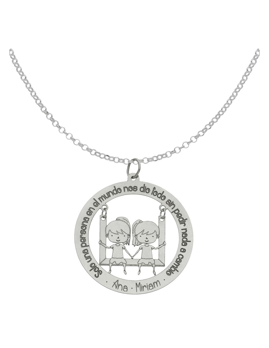 Gargantilla frase SOLO UNA PERSONA EN EL MUNDO NOS DIO TODO SIN PEDIR NADA A CAMBIO + Niñas en Plata de Ley 925mm.