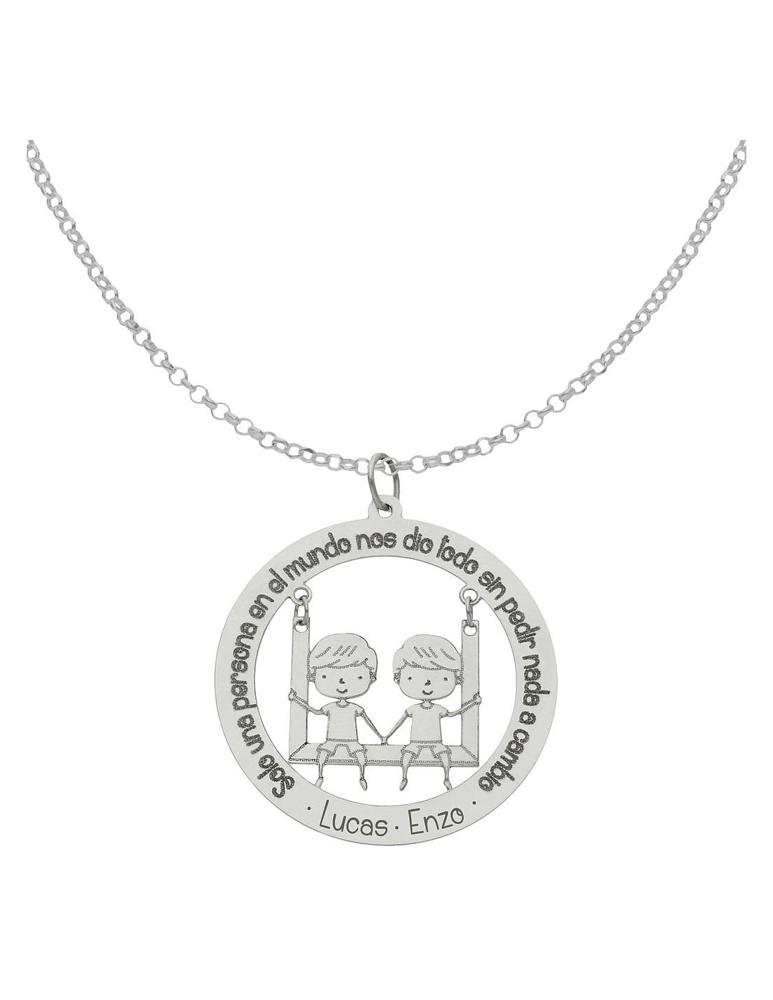 Gargantilla frase SOLO UNA PERSONA EN EL MUNDO NOS DIO TODO SIN PEDIR NADA A CAMBIO + Niños en Plata de Ley 925mm.