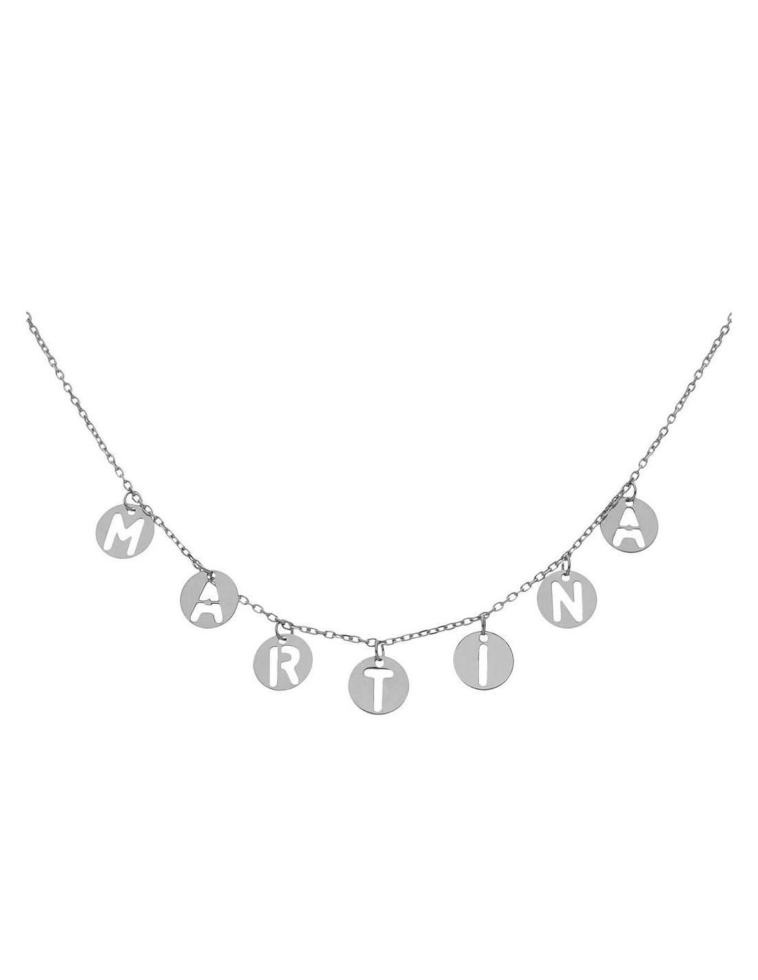 Gargantilla círculos de nombre en Plata de Ley. con letras del nombre grabadas.