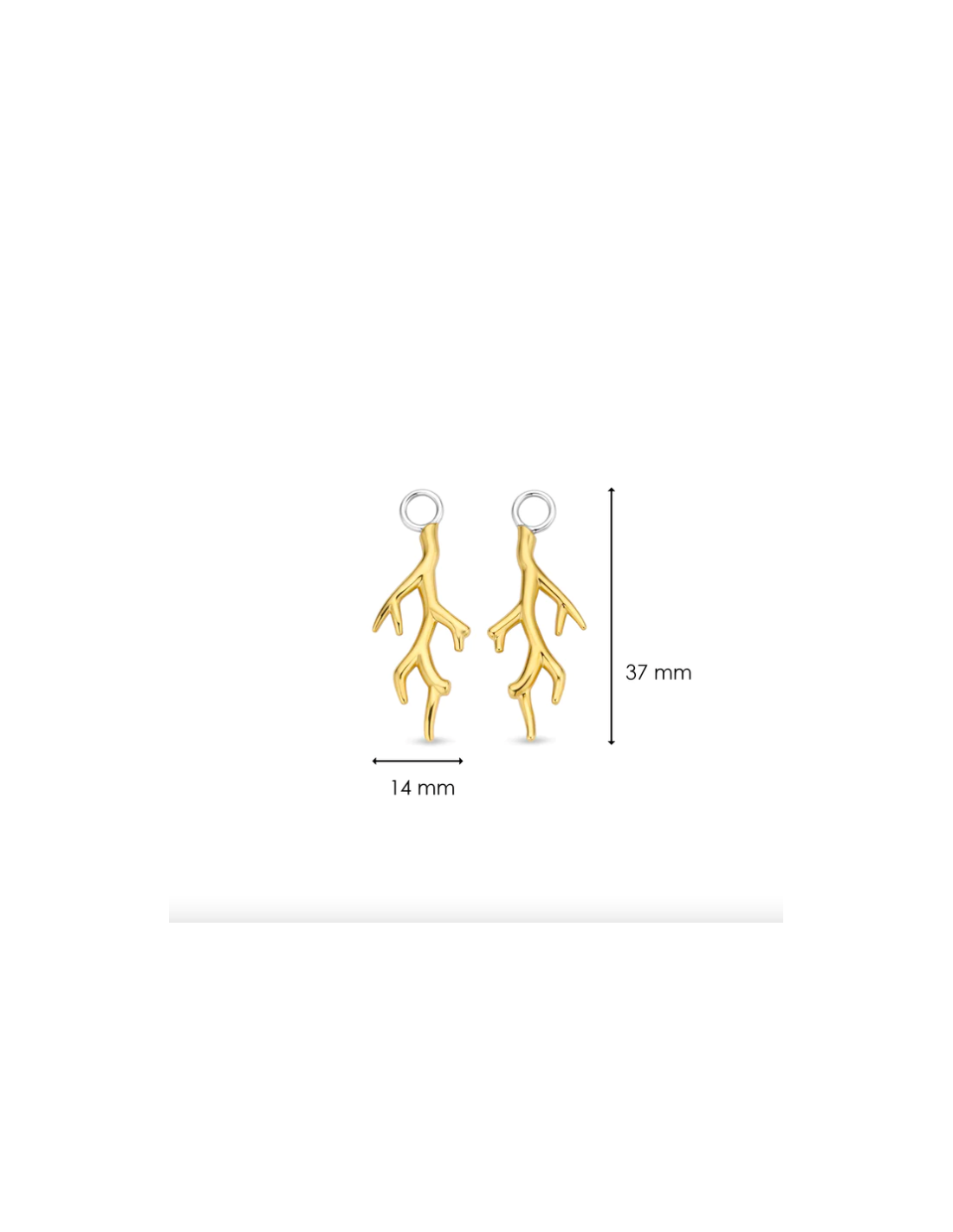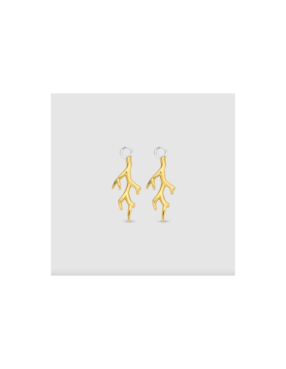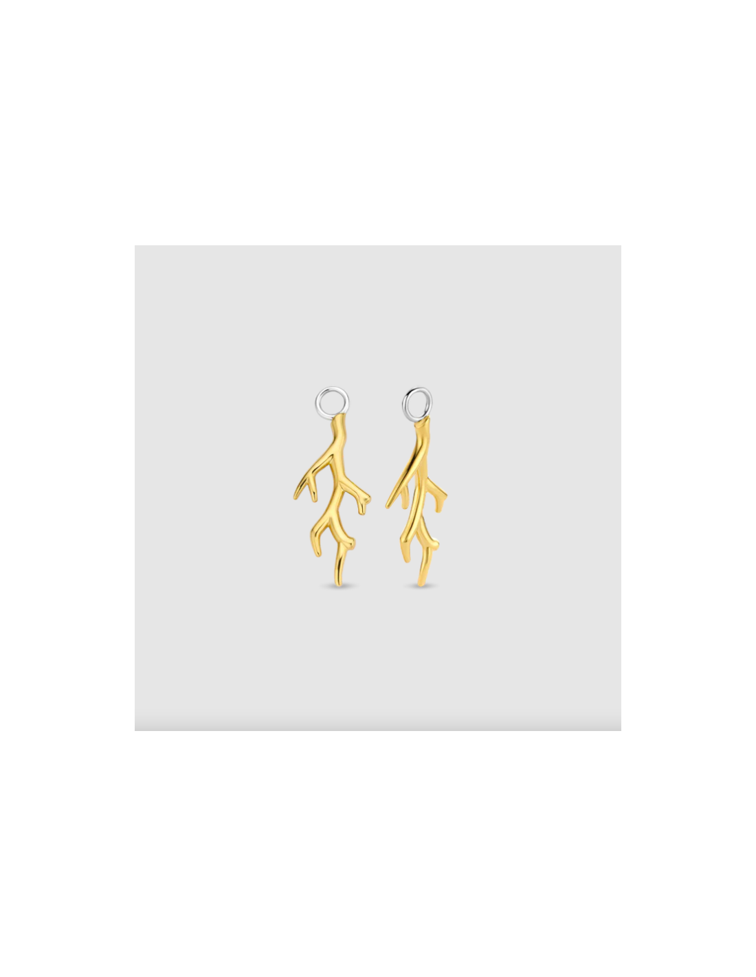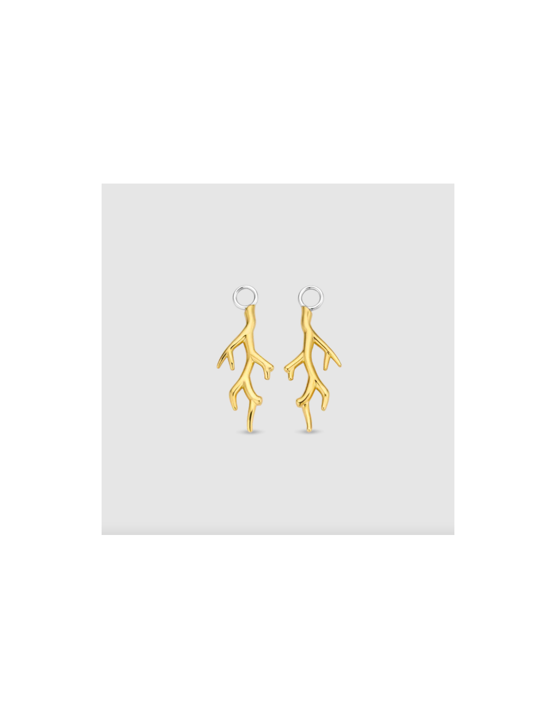Estos charms para aros de plata TI SENTO 9213SY tienen forma de coral y están bañadas con una gruesa capa de oro de 18k. Harán de unos aros aburridos en unos pendientes para destacar por encima de todos.