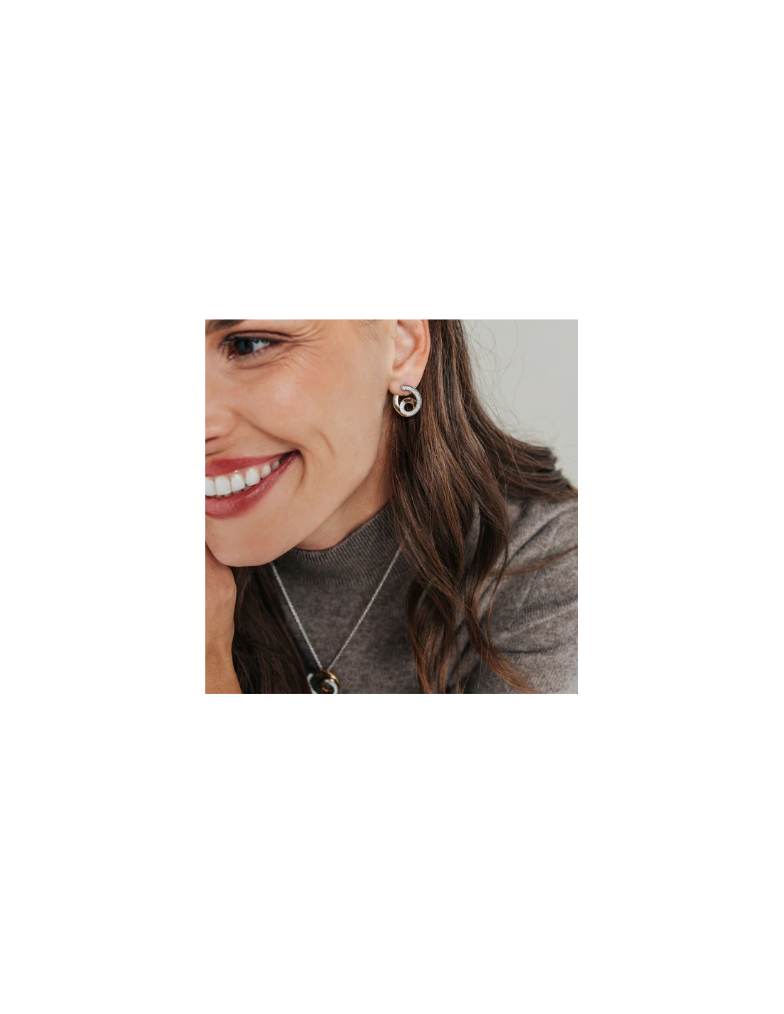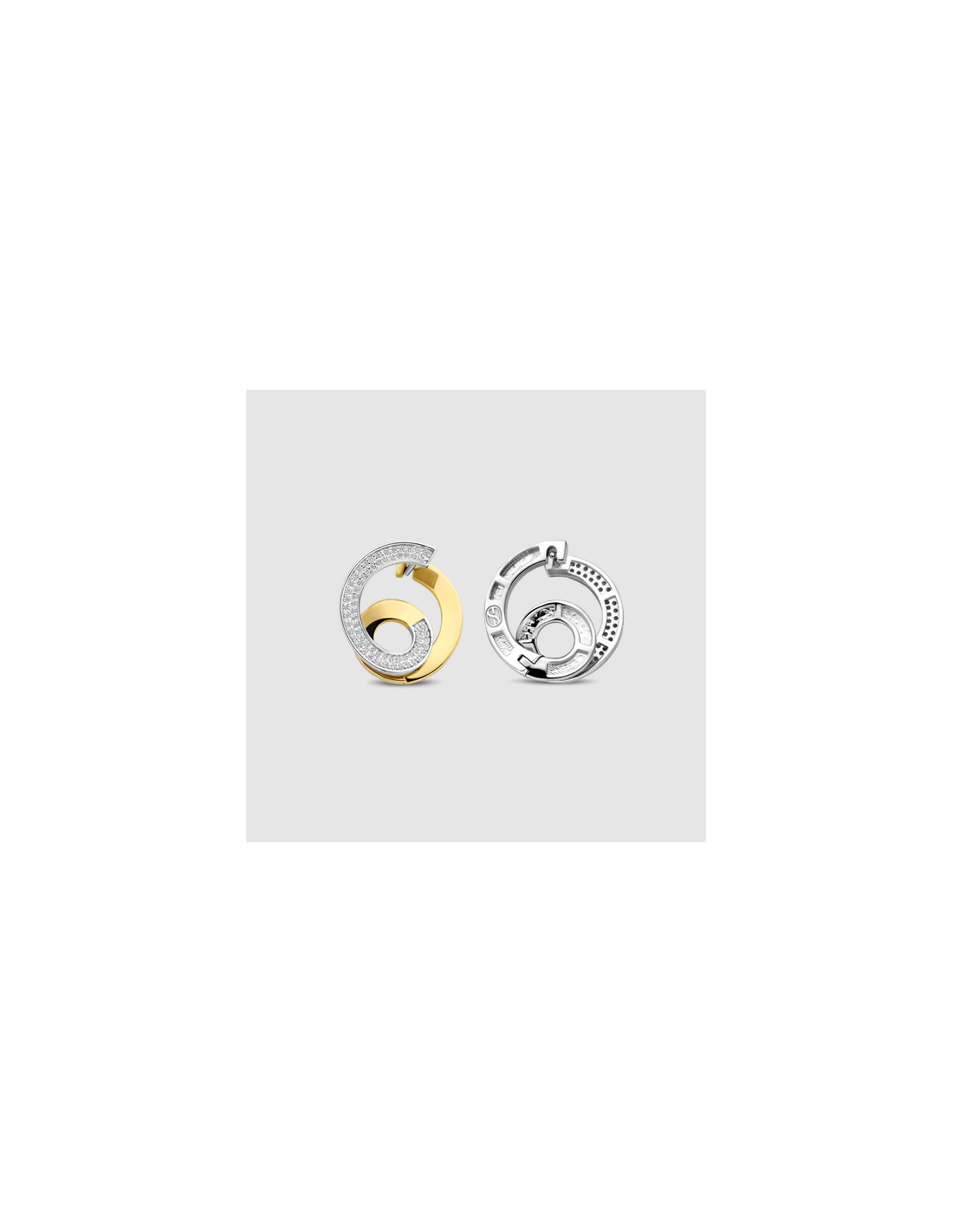 Elaborados en plata de ley 925 de primera calidad y con un radiante acabado en oro amarillo, su diseño de doble espiral atrae la mirada con una dinámica sensación de movimiento. Una espiral interior y exterior engastada con pavé de circonitas cúbicas brilla, creando un hipnótico juego de luz y dimensión. Con 18 mm de diámetro, estos pendientes ofrecen una geometría audaz con un suave giro, perfectos para realzar looks minimalistas o añadir refinamiento a tus trajes de noche.