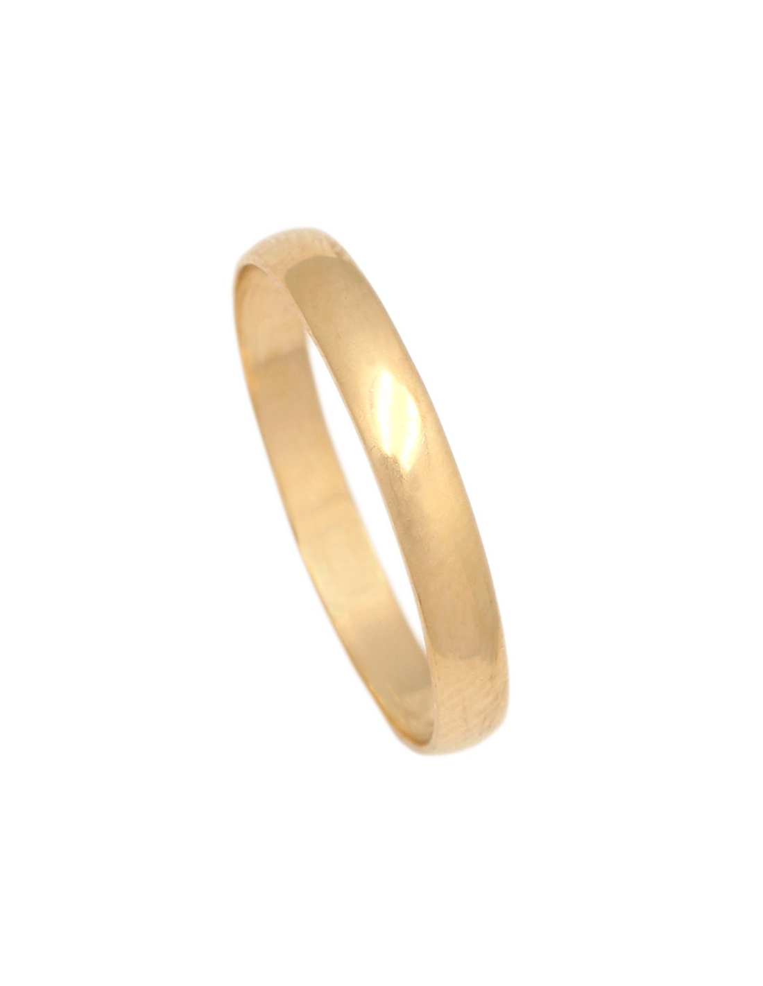 Alianza lisa media caña de 3mm en oro de 18 Kl. Terminación en brillo.