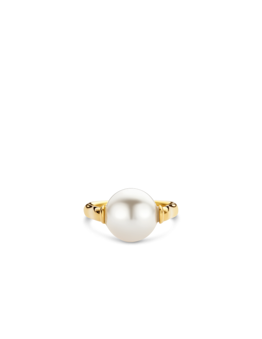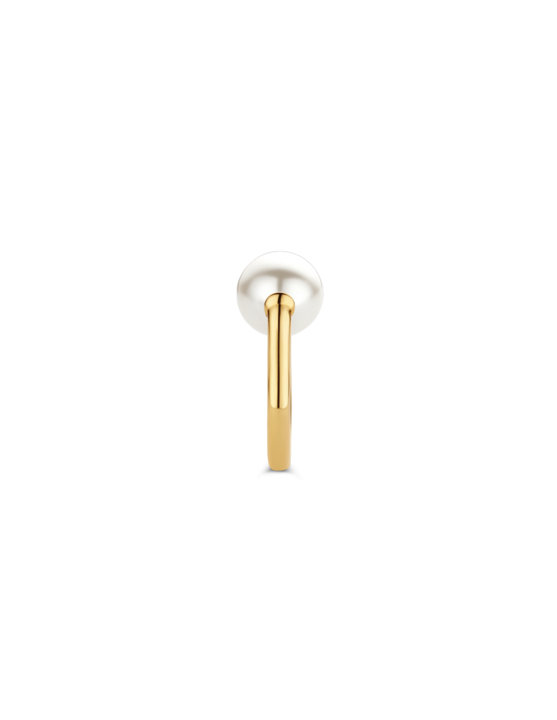 Este anillo de plata bañado en oro de TI SENTO - Milano tiene una perla blanca brillante como pieza central.