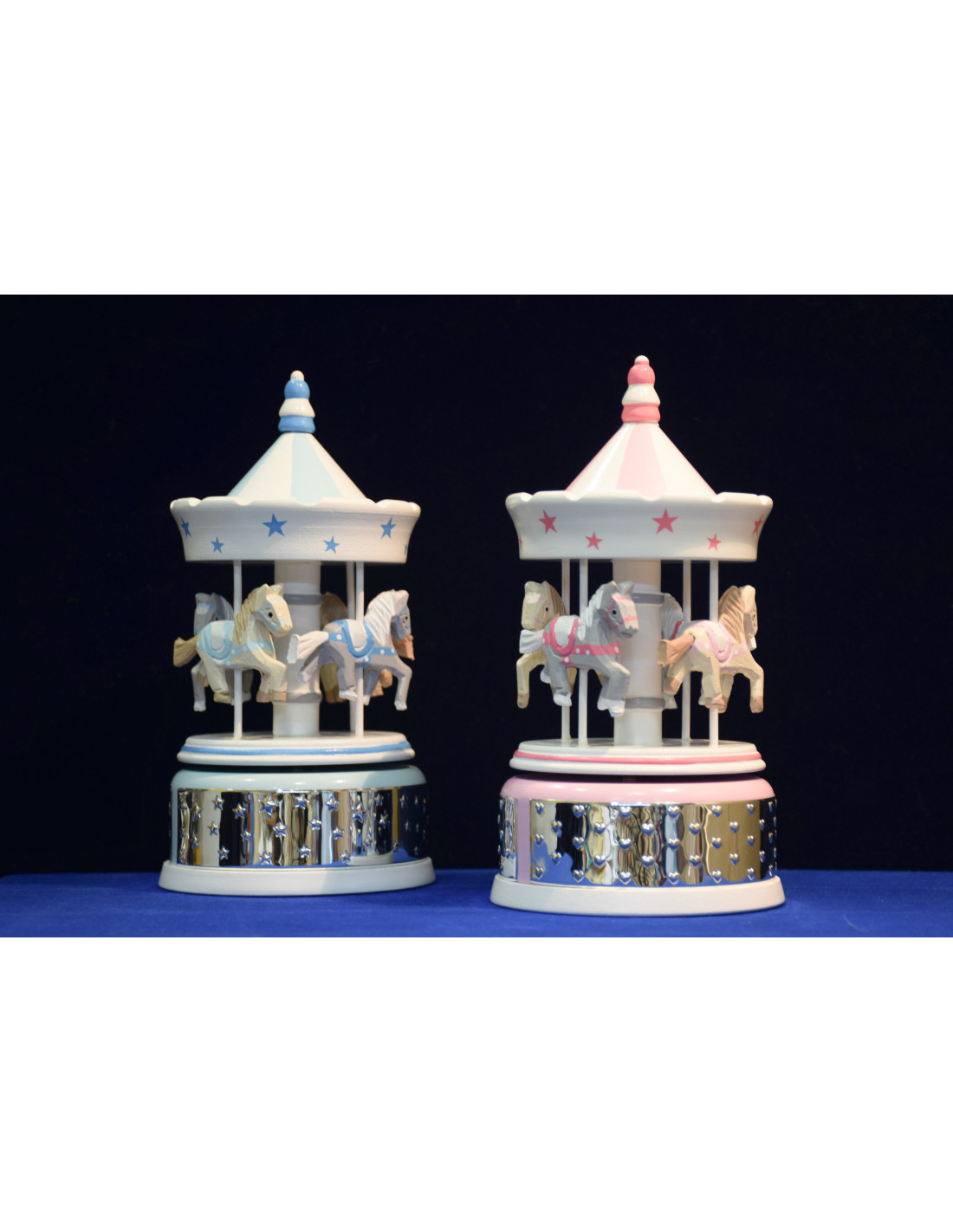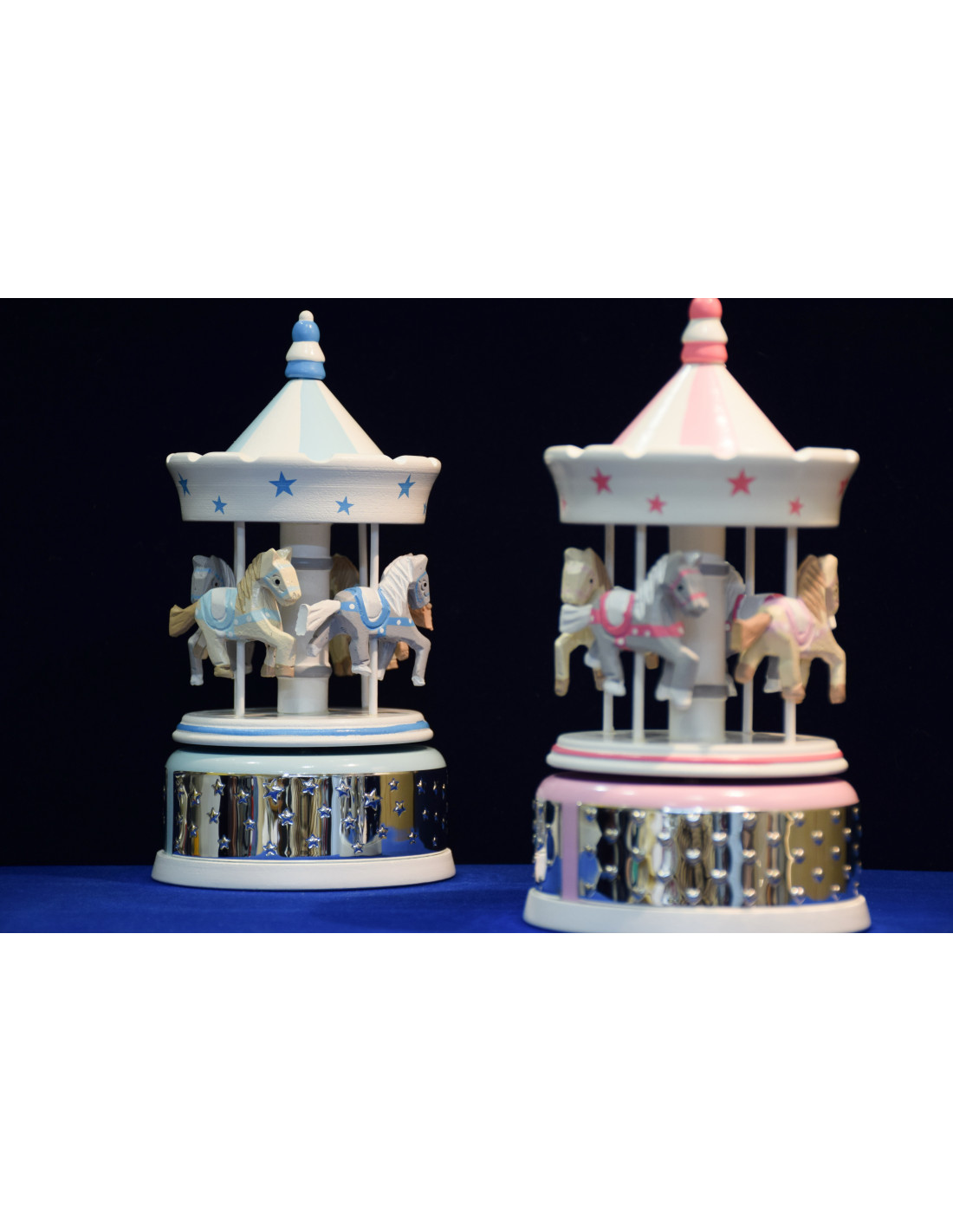 Será la delicia de los más pequeños de la casa ver cómo da vueltas y escuchar la música de este bonito tiovivo de madera y plata. Además de decorar de forma elegante la habitación del pequeñ@