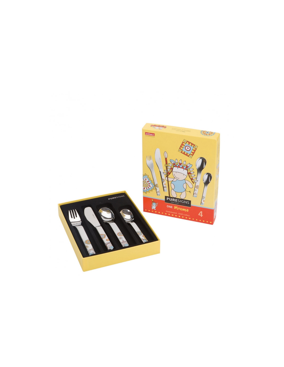 El set se compone de cuchara y cucharilla, tenedor y cuchillo y todos llevan dibujos de animalitos en su empuñadura. Sigue navegando por nuestra red y encontrarás diferentes dibujos. Seguro que aciertas con este regalo.