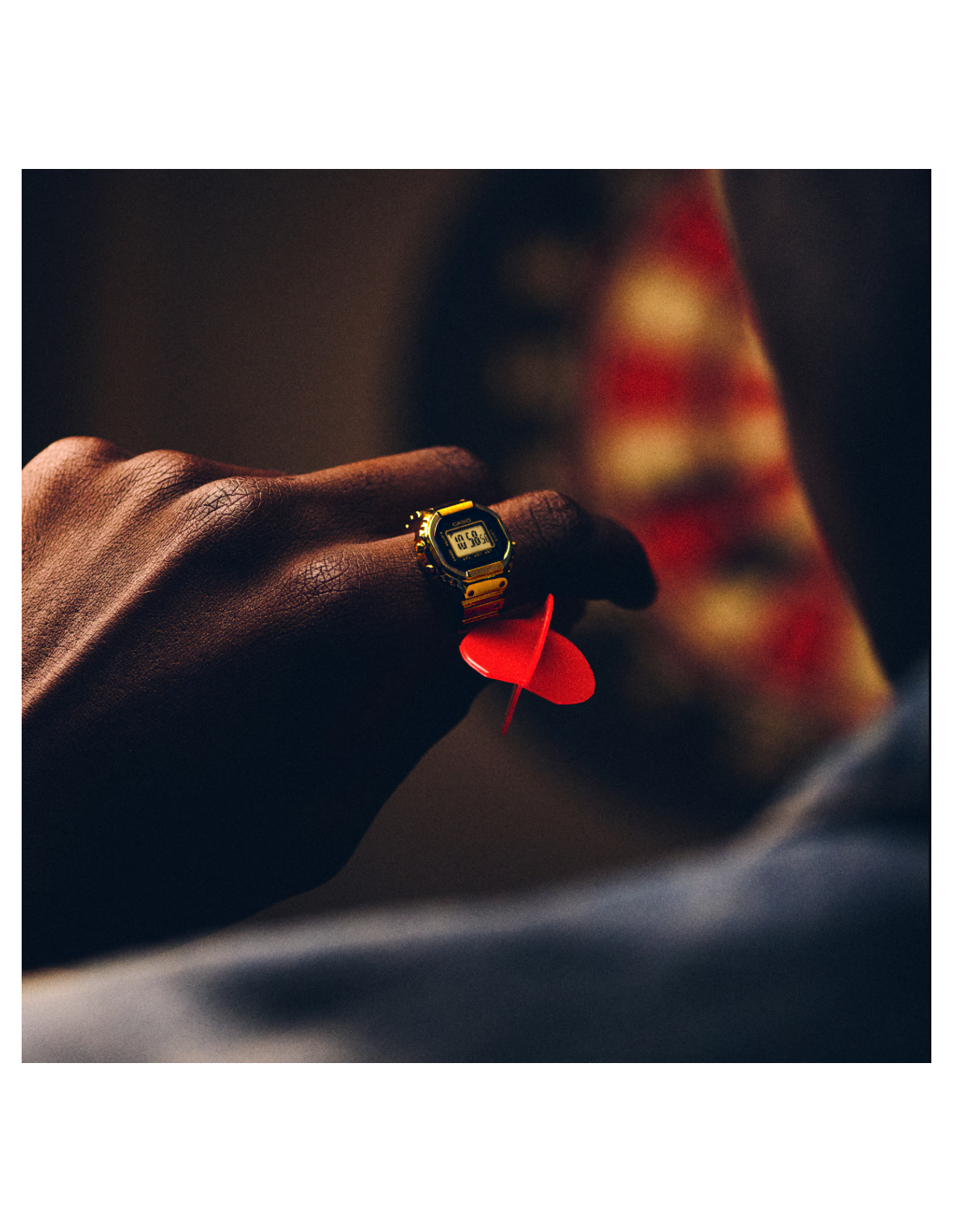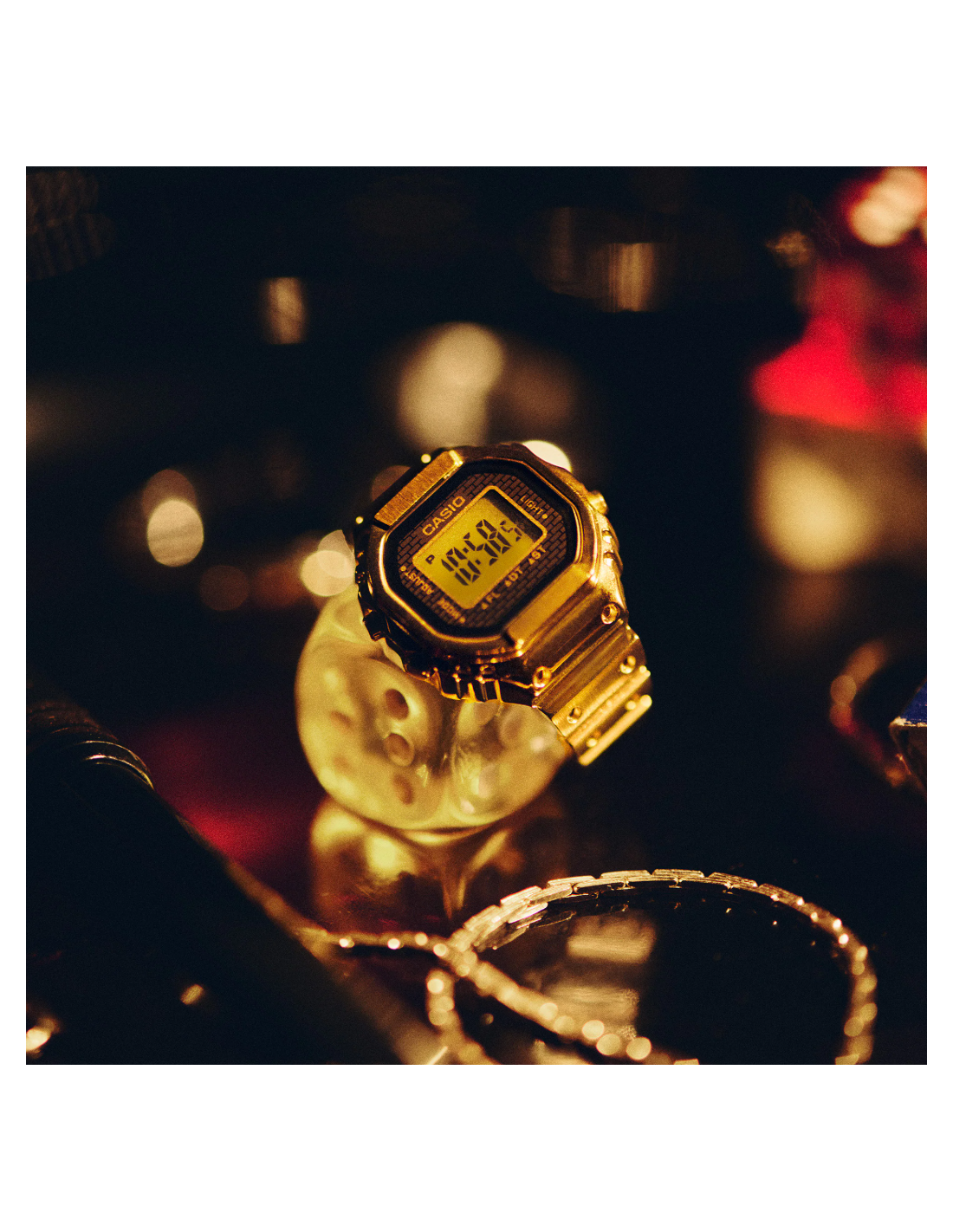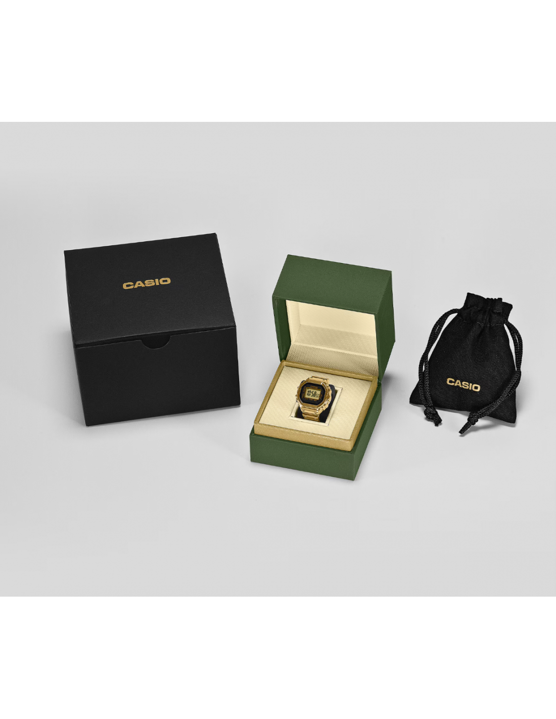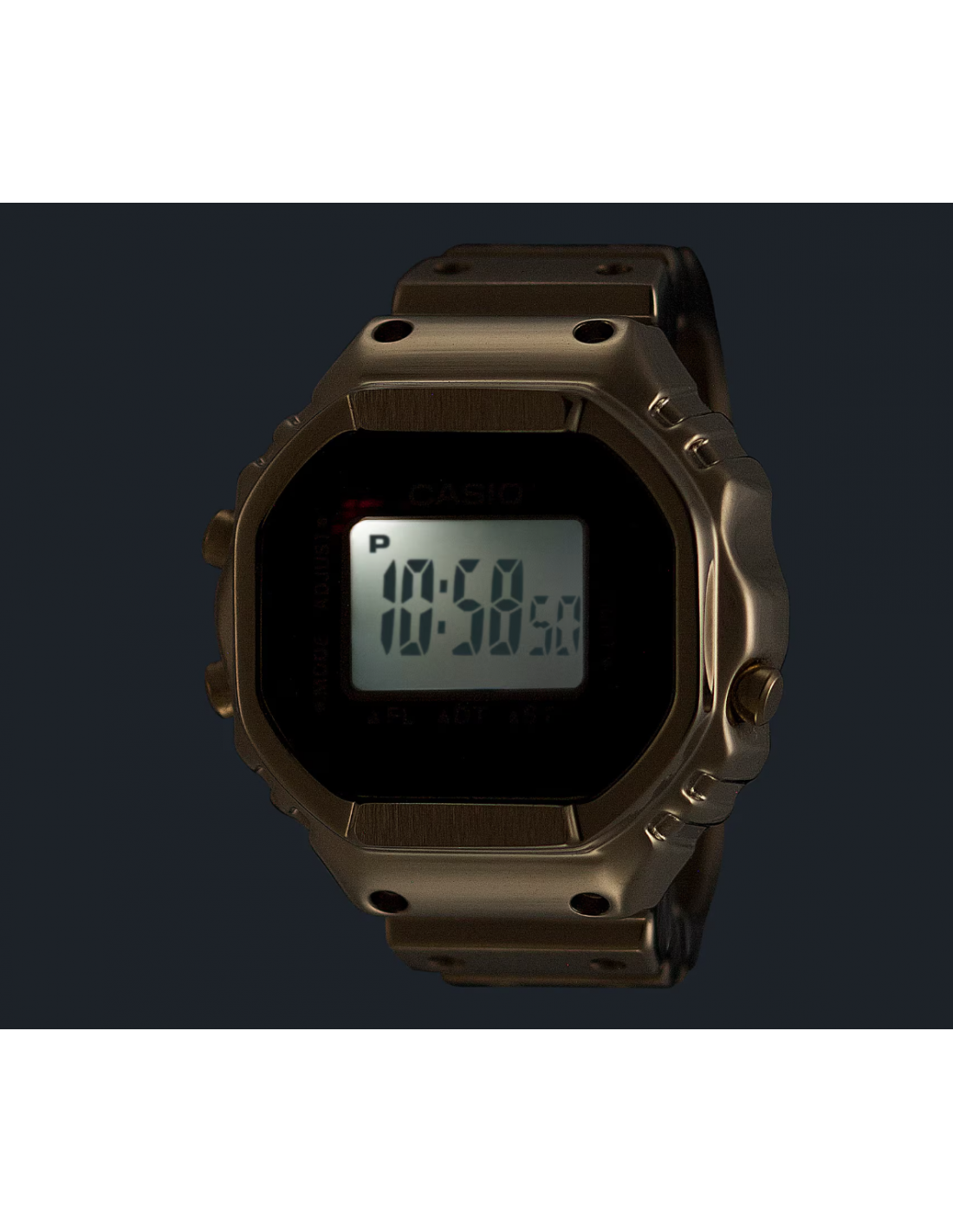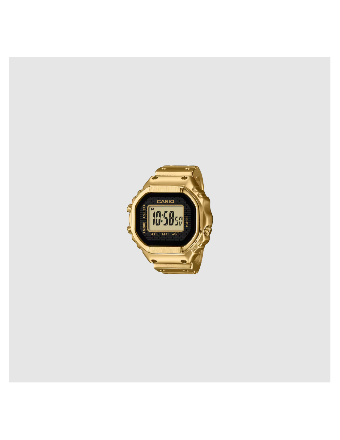 n reloj de pulsera digital para el dedo: práctico y divertido. Diseño compacto, aspecto sofisticado y un toque de pura diversión. Crear una versión de tamaño anillo de la compleja forma y funciones del reloj Casio no fue tarea fácil. Para que esto fuera posible, necesitábamos utilizar el avanzado moldeo por inyección de metal (MIM) para recrear con precisión los detalles más finos en acero inoxidable. El anillo se termina con un baño de iones de color dorado que le da un brillo resplandeciente. La carcasa monocasco y la técnica especial de pegado del cristal garantizan un sellado hermético para la resistencia diaria al agua, al tiempo que permiten sustituir la batería. Hemos multiplicado por 10 el tamaño del módulo de reloj estándar y lo hemos combinado con una pequeña pila de botón para crear un reloj digital de 3 botones totalmente funcional que realmente cabe en el dedo. Incluso con este pequeño tamaño, el reloj cuenta con una pantalla LCD de 7 segmentos que muestra toda la información que necesita: horas, minutos y segundos, así como fecha, hora dual y cronómetro. Una suave luz intermitente se activa a la hora elegida, ofreciendo un brillo sutil y emotivo. El anillo se ajusta a un dedo de la talla 22 (US 10.5, EU U) y viene con dos espaciadores de ajuste de talla, en talla 19 (19 mm de diámetro interior) y talla 16 (18 mm de diámetro interior).