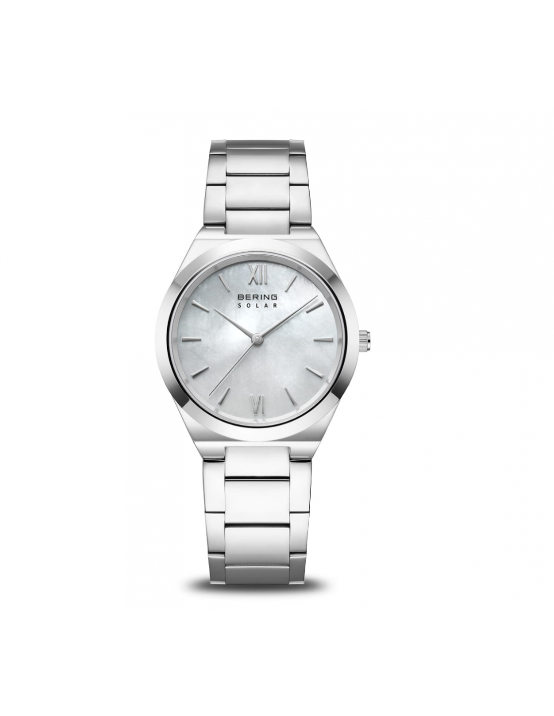 El reloj de mujer BERING 19932-700 es una fusión perfecta de diseño escandinavo y elegancia contemporánea. Su caja de acero inoxidable plateado se combina armoniosamente con un brazalete de eslabones pulidos que aporta un toque de lujo discreto. La esfera de nácar natural brilla con reflejos iridiscentes que cambian con la luz, mientras los índices finos y los números romanos a las 12 y a las 6 horas aportan un equilibrio entre modernidad y tradición.